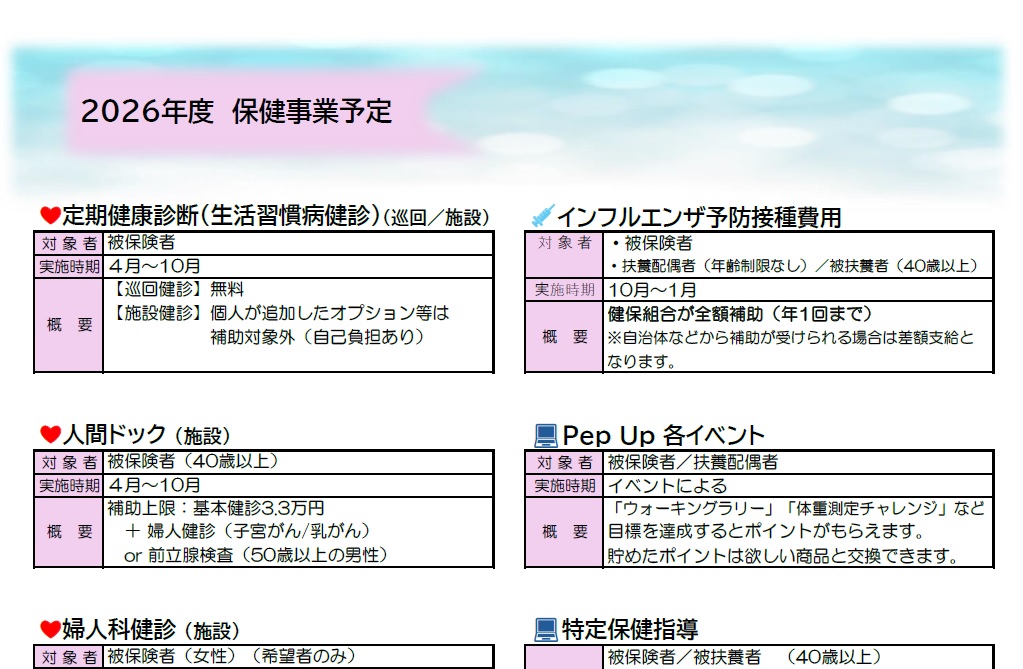 2026年度 保健事業予定